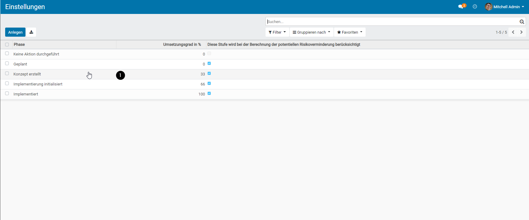 - Benennen Sie die Stufe und geben Sie den Umsetzungsgrad in % ein.