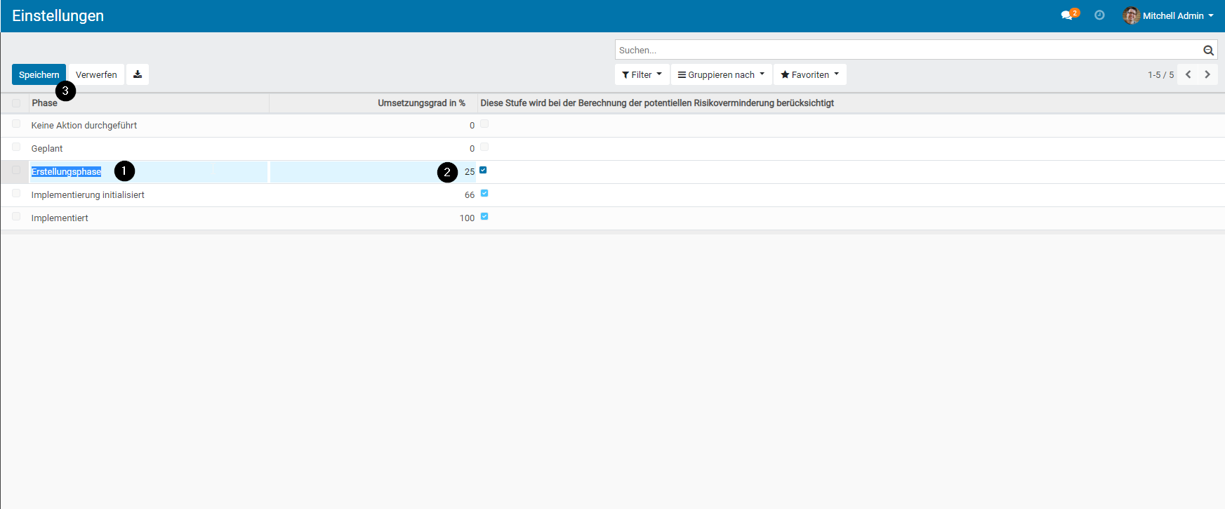 - Einstellungen für die „Risikobewertung„