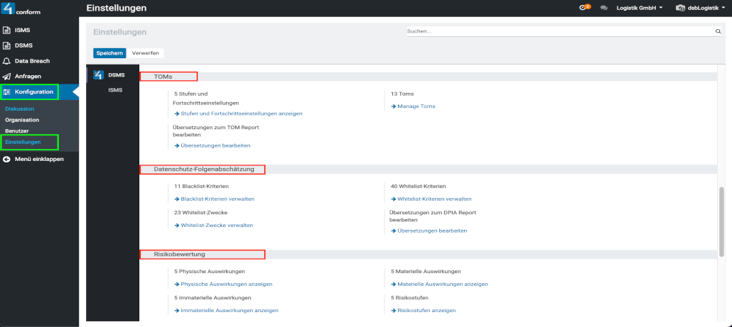 - Einstellungen für die „Datenschutz-Folgenabschätzung„