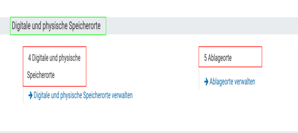 In der Gruppe „Digitale und physische Speicherorte“ , finden Sie die Einstellungen um „Digitale und physische Speicherorte“ und „Ablageorte“ zu verwalten und zu bearbeiten.