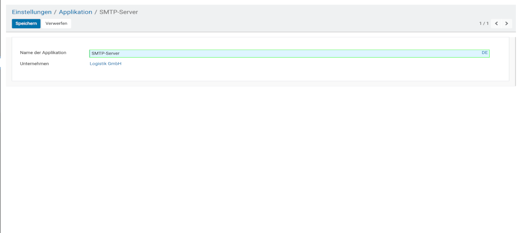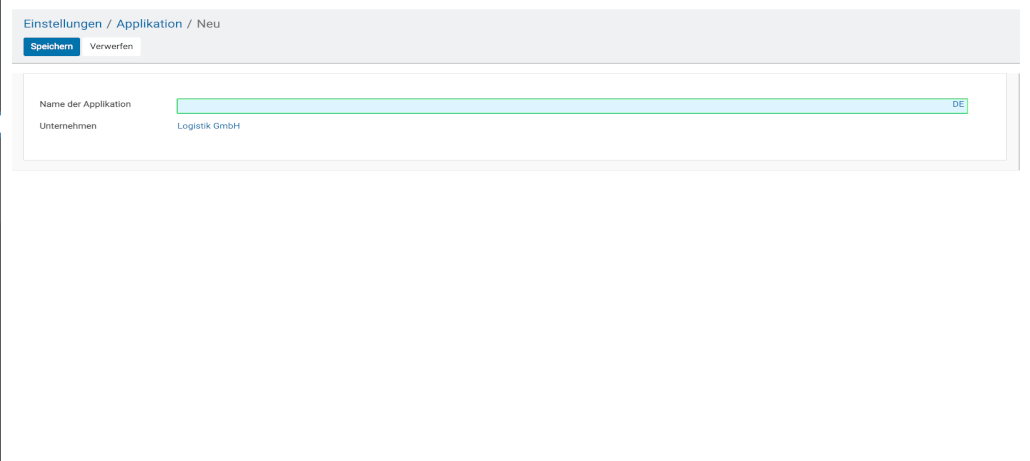 - Hier können Sie den Namen des Servers, unter dem Punkt „Name der Applikation“ , hinzufügen. Das Unternehmen, wird automatisch vom System aus hinzugefügt. Durch betätigen der Schaltfläche „Speichern“ , wird der neue Applikationsserver im System erstellt.