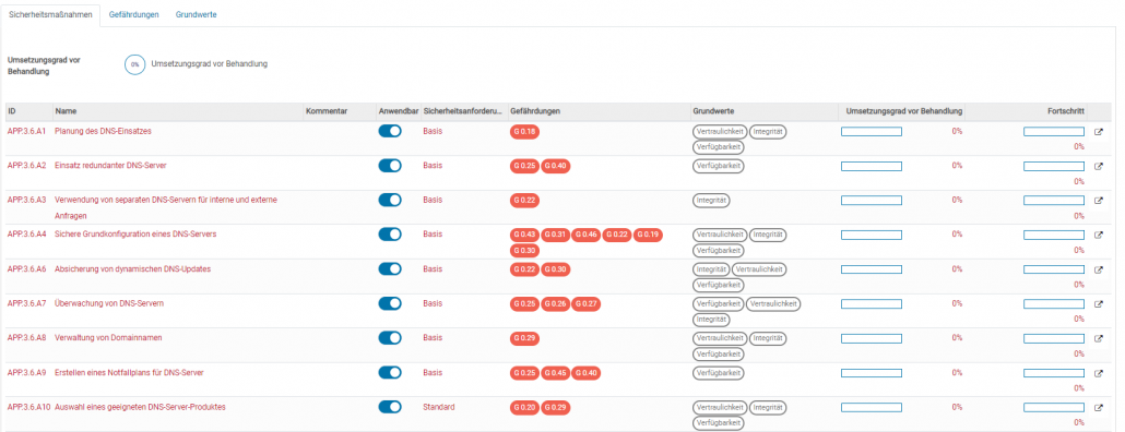 Nun wurde das Asset erfolgreich festgelegt, einer Assetgruppe zugeordnet und der potentielle Schaden ermittelt. Die Sicherheitsmaßnahmen und Gefährdungen sind unterhalb in der Tabelle ersichtlich.
