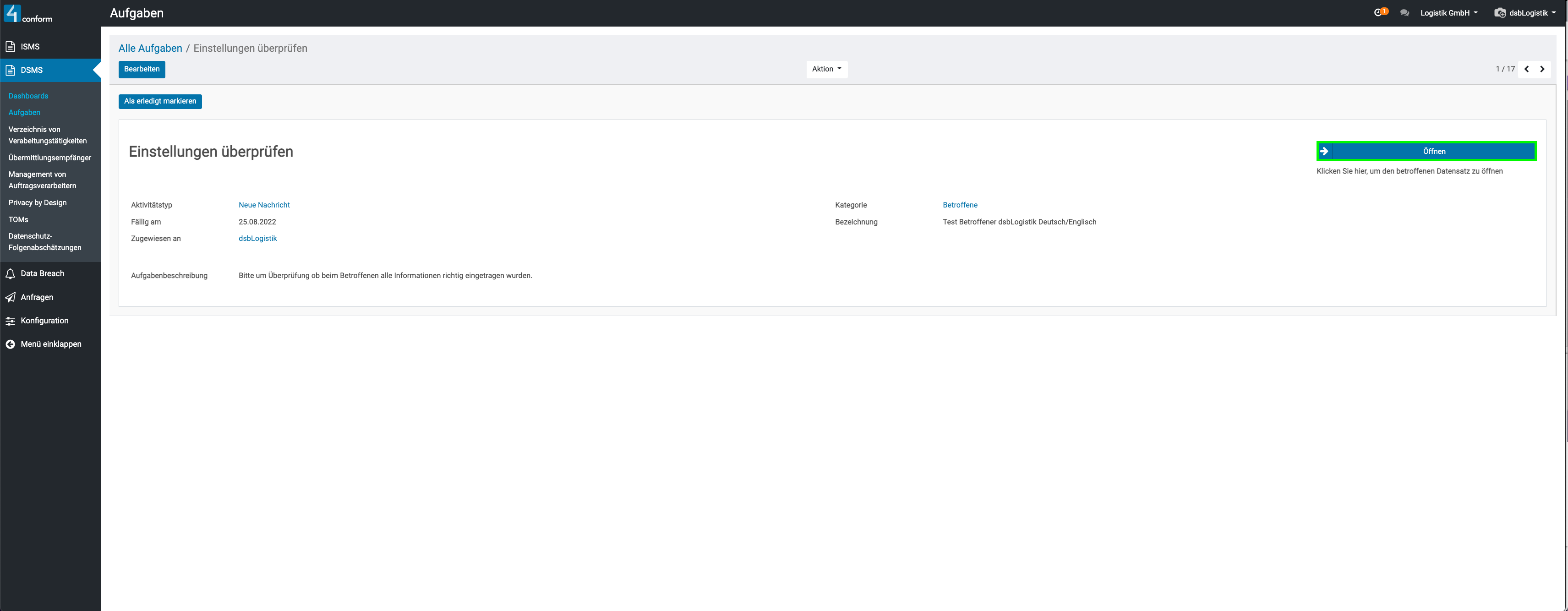 6. Durch auswählen der Schaltfläche „Öffnen„, gelangen sie direkt zum Schritt, welcher noch erledigt werden muss.