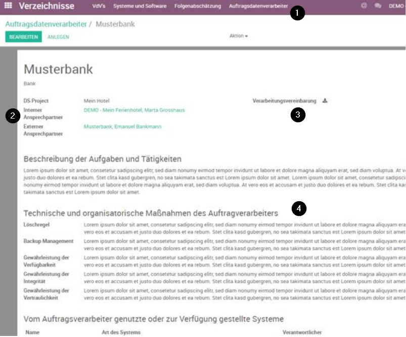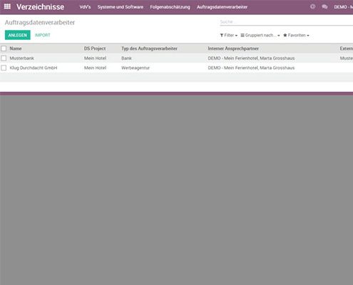 - Auftragsverarbeiter: Hier werden die Auftragsverarbeiter verwaltet.
