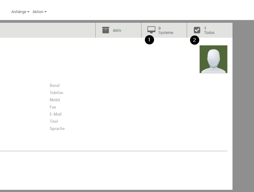 - Systeme: Mit einem Klick sehen Sie welchen Systemen dieser Kontakt zugeordnet wurde.