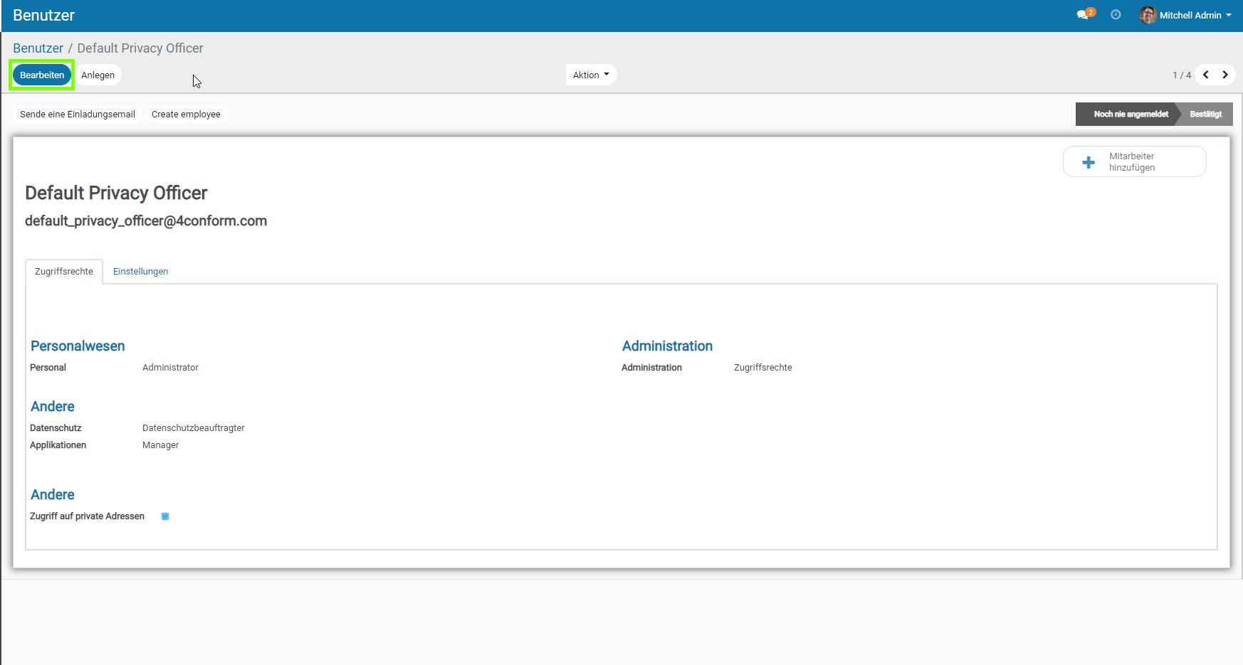 - Um die Einstellungen des ausgewählten Benutzers bearbeiten zu können, müssen sie die Schaltfläche „Bearbeiten“ auswählen.