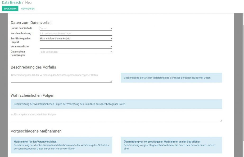 Sie können in der DSMS.cloud nun alle Betroffenenanfragen Schritt für Schritt dokumentieren und verlieren somit nie den Überblick. Zudem profitieren Sie von vielen Vorlagen. Auch die Protokollierung einer Daten Panne funktioniert nun ganz einfach und kann als PDF für die Meldung bei der zuständigen Datenschutzbehörde verwendet werden.