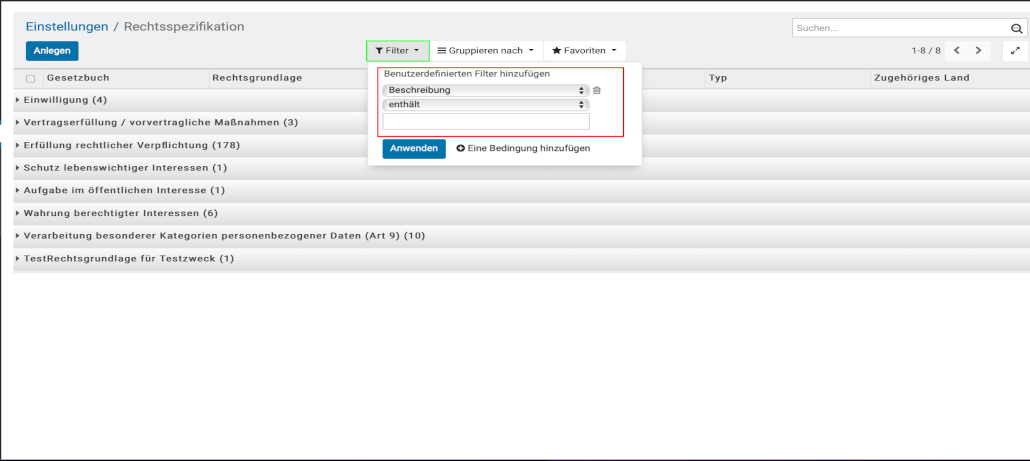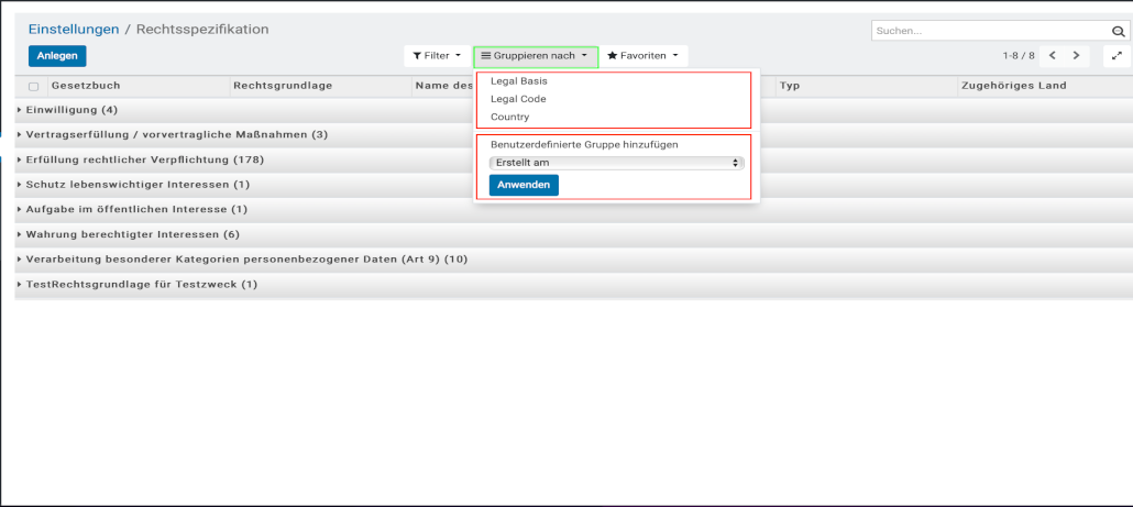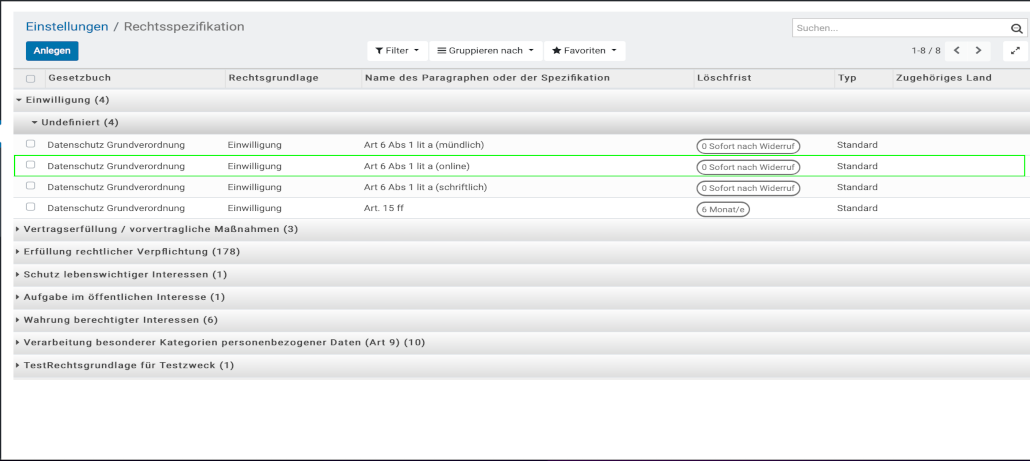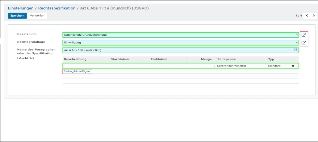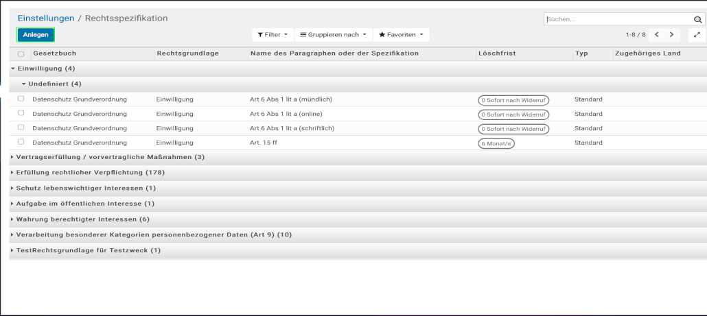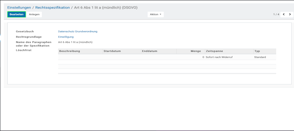 Anlegen der Rechtsgrundlage