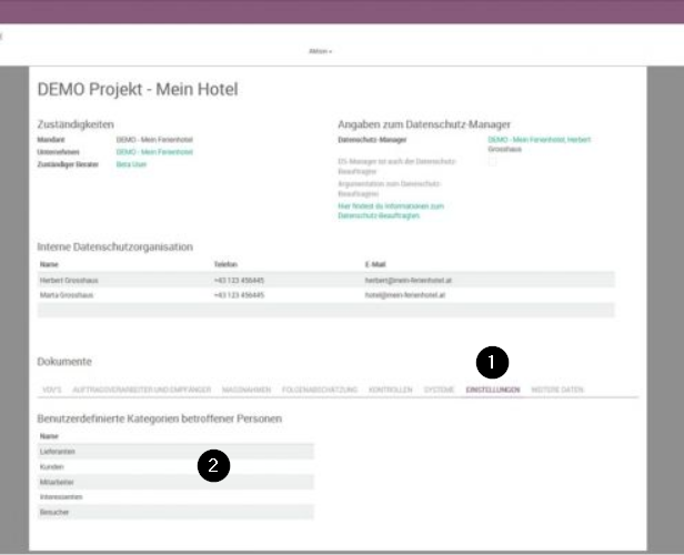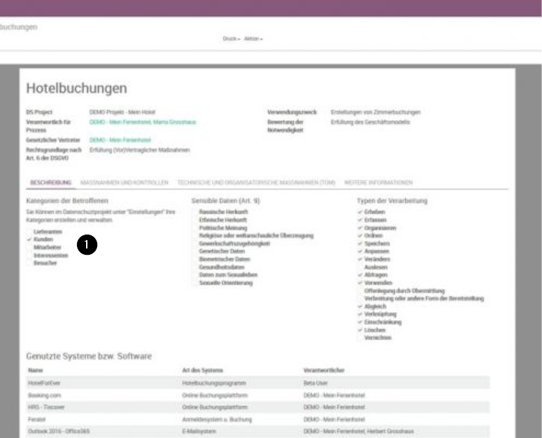 - Kategorien der Betroffenen: Erstellen Sie für jedes Datenschutzprojekt Ihre eigenen „Kategorien der Betroffenen“.z.B.: Kunden, Interessenten, Lieferanten, Mitarbeiter