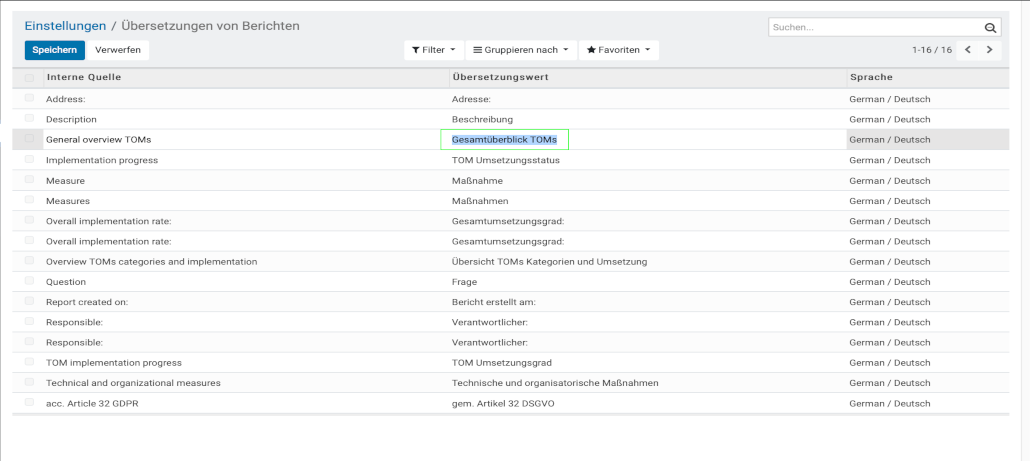 - Die Änderung der Übersetzung, wird durch betätigen der Schaltfläche „Speichern„, im System übernommen.